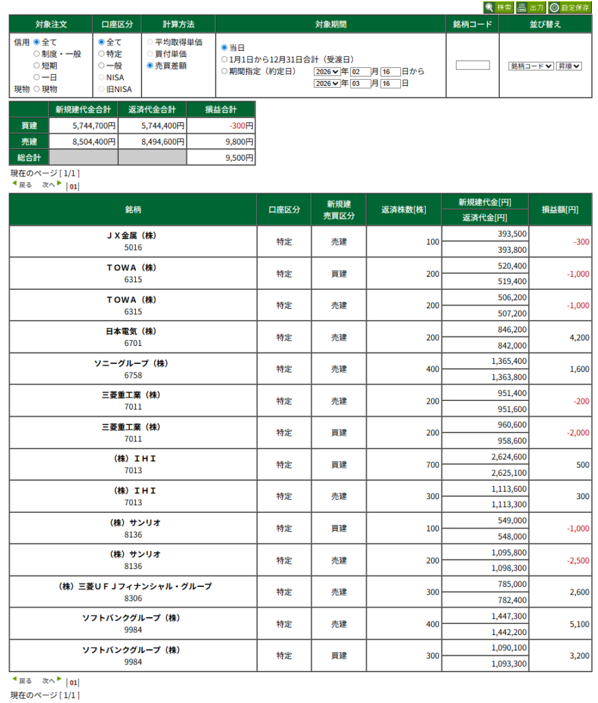 銘柄:IHI/JX金属/三菱重工/TOWA/ソニー/UFJフィナンシャル/ソフトバンクG/サンリオ/NEC